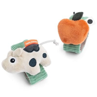 – 1 paire.- En forme d’ours.- Composition : bouclette, tissu sergé et double gaze de coton.- Lavable à la main uniquement.- Ne pas utiliser d’eau de javel.- Ne pas sécher au sèche-linge.- Ne pas repasser.- Ne pas nettoyer à sec.Age conseillé : 0-6 mois